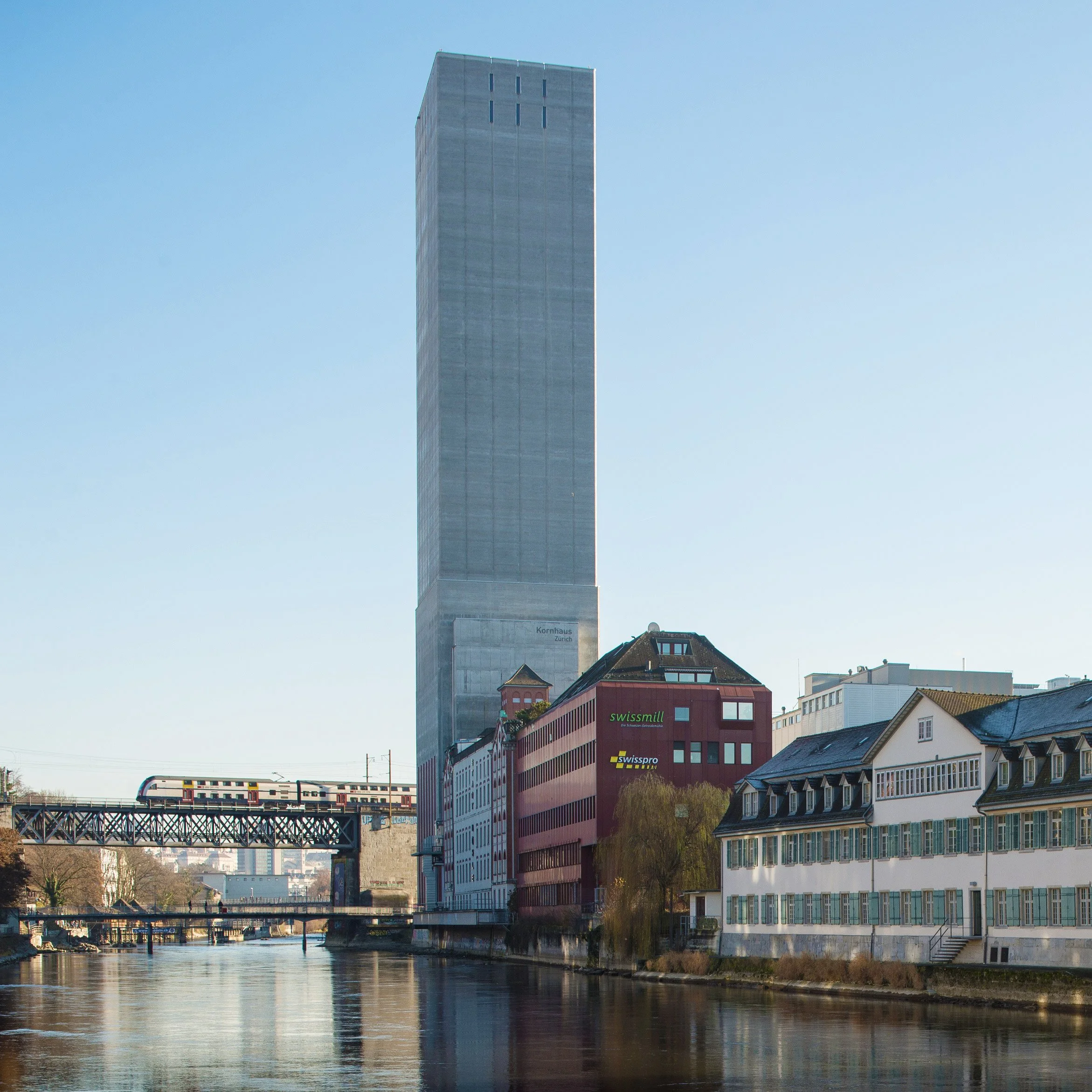 Von den Baslern einst abgelehnt und jetzt eine Ikone im Kreis 5. Der 2016 fertiggestellte Swissmill Tower ist mit 118 Metern das höchste Getreidesilo der Welt. Er gehört zur städtischen Mühle Swissmill und steht für die funktionale Seite der Stadt – Industrie mitten im urbanen Raum, sichtbar und kompromisslos. Danke Basel!